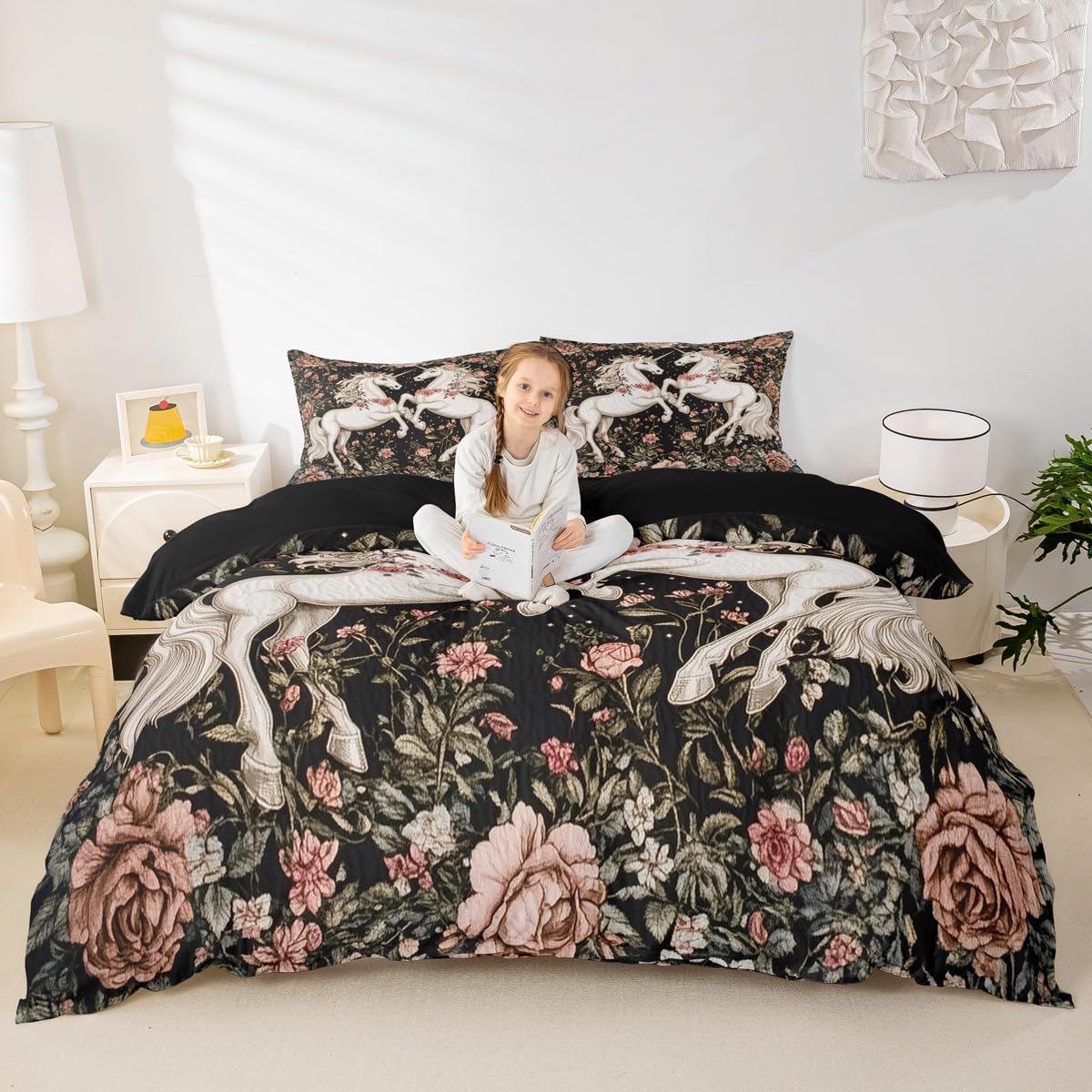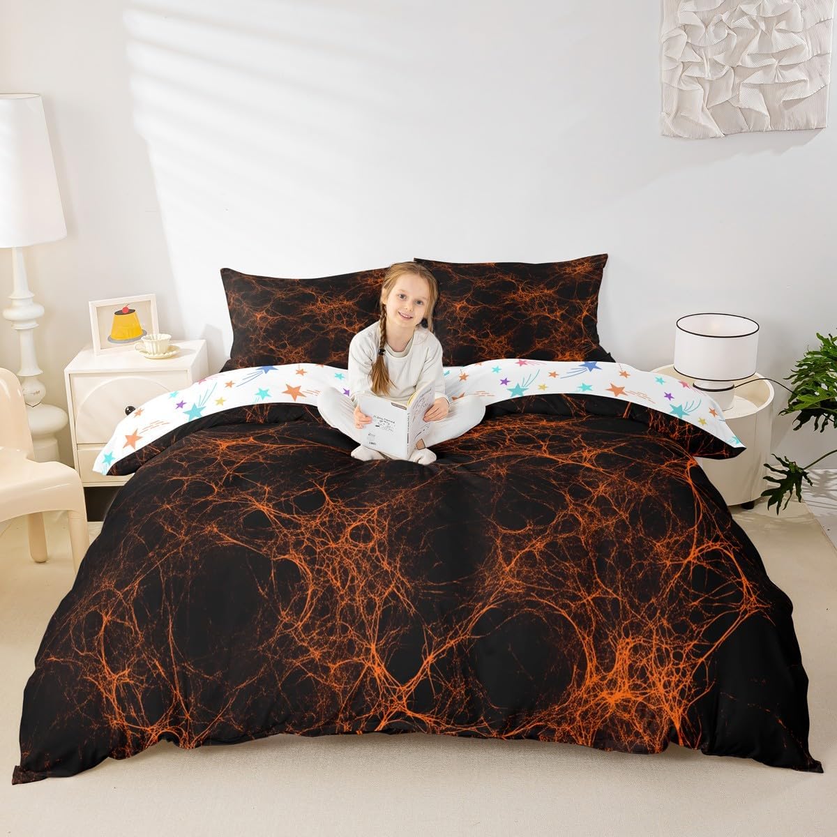 Package Include: Duvet Cover, Pillowcase; High end Duvet Cover Set Pattern Bedding Set,simply decorating your rooms any time you want, bringing you fresh feel for year round use; Long lasting: Made from polyester microfiber,the sheet set offers long lasting strength, anatural resistance to shrinking and a noticeably soft hand feel; Size Information: Toddler size: 2 Piece duvet cover set 1 x Duvet Cover 42" x 58", 1 x pillowcase 20" x 30";Without Comforter. Twin size: 2 Piece duvet cover set 1 x Duvet Cover 68" x 90", 1 x pillowcase 20" x 30";Without Comforter; Full size: 3 Piece duvet cover set 1 x Duvet Cover 80" x 90", 2 x pillowcase 20" x 30";Without Comforter; Queen size: 3 Piece duvet cover set 1 x Duvet Cover 90" x 90", 2 x pillowcase 20" x 30";Without Comforter; King size: 3 Piece duvet cover set 1 x Duvet Cover 104" x 90", 2 x pillowcase 20" x 36";Without Comforter; Personalize your bedroom: Beautiful design and colorful print, makes your bedroom unique and brings you a wonderful dream; Washing instructions: Machine wash separately in cold water,hang dry, do not bleach; Occasion: The cute soft duvet cover bedding sets designed for Children ,Adult, Men, Women, Teens; This duvet cover set is also suitable for full seasons, Spring, Summer, Autumn and Winter;